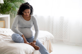 Many women experience foot problems during pregnancy due to hormonal and physical adjustments in the body. Increased levels of certain hormones loosen the ligaments. This allows the arches of the feet to flatten under the added weight, which can lead to pain or changes in alignment. The extra pressure on the feet can also cause swelling, known as edema, as fluid accumulates in the lower legs and ankles. This can make shoes feel tight or uncomfortable. A shifting center of gravity often alters posture and gait, placing additional strain on the feet and ankles. Some women notice their feet become longer or wider as a result of these changes. A podiatrist can evaluate changes in arch height, swelling, or pain, and recommend orthotics or supportive footwear to improve comfort and stability. If you have foot pain related to pregnancy, it is suggested that you make an appointment with a podiatrist for a diagnosis and treatment.